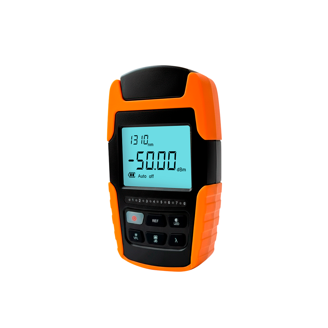 Equipamento compacto e de alta precisão, desenvolvido para medições opticas e testes de cabos RJ45. Suporta 10 comprimentos de onda (850 a 1650nm), garante medições sensíveis e lineares, além de oferecer recursos como iluminação led, auto calibração, memoria de comprimento de onda e desligamento automático configurável.