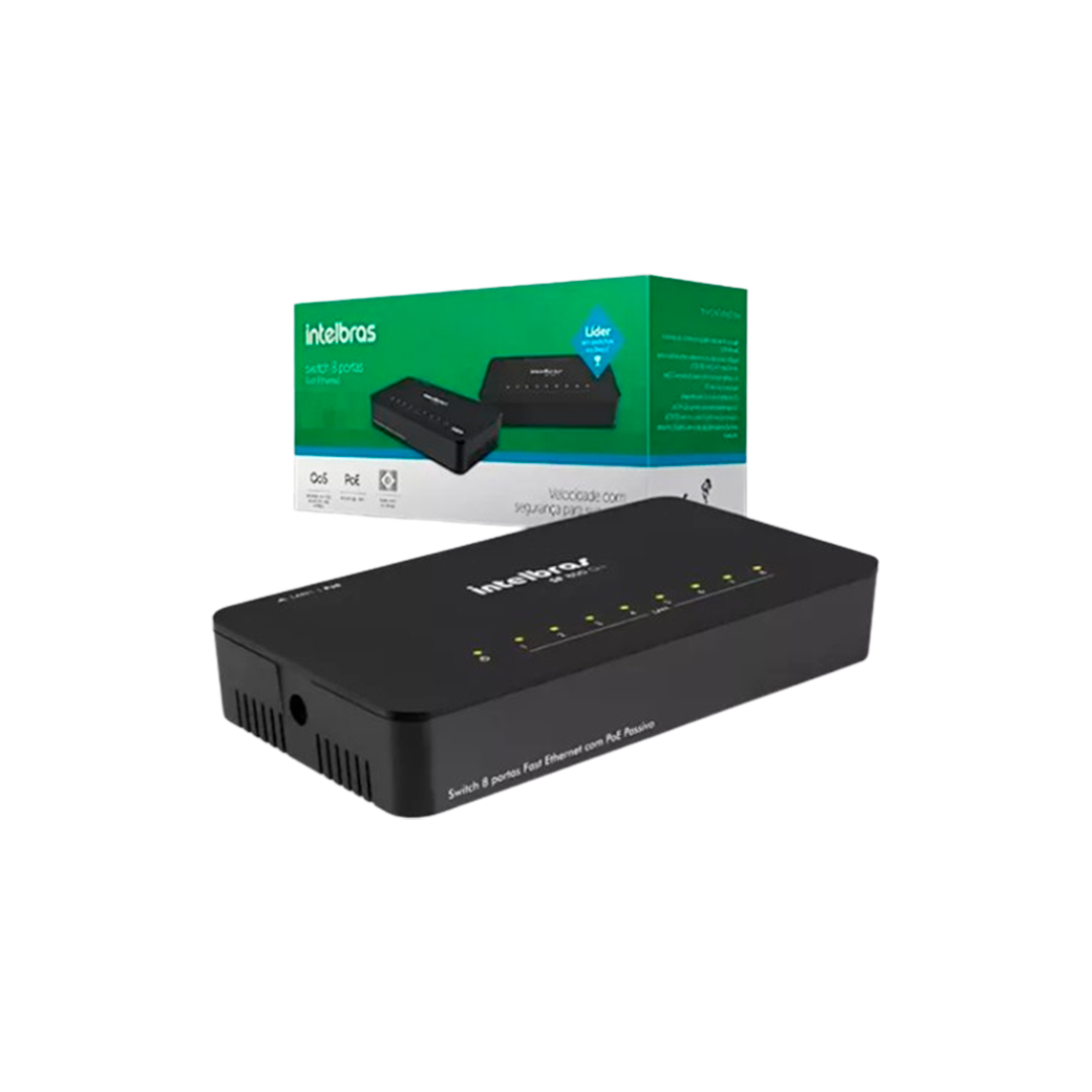 Possui 8 portas Fast Ethernet 10/100 Mbps para o compartilhamento de internet com até 8 dispositivos. Ele viabiliza a construção de redes de comutação de dados, permitindo a integração de computadores, rádios outdoor, roteadores e câmeras IP.